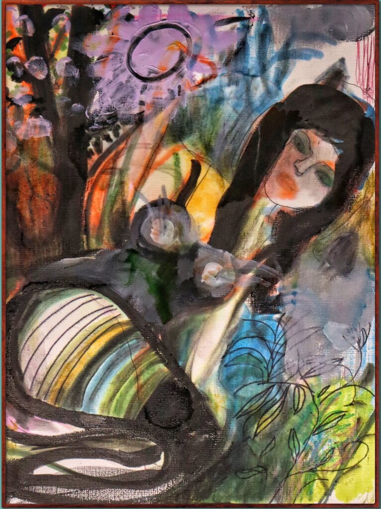 Il silenzio può essere un urlo. È qualcosa che vibra, che pesa, che dice anche quando tace. Le mie donne convivono con quel silenzio, lo abitano. Non hanno bisogno di spiegarsi: i loro corpi, i loro sguardi, la pittura stessa parlano per loro. Le parole volano, ma il silenzio resta, e a volte è più eloquente di qualsiasi discorso.
