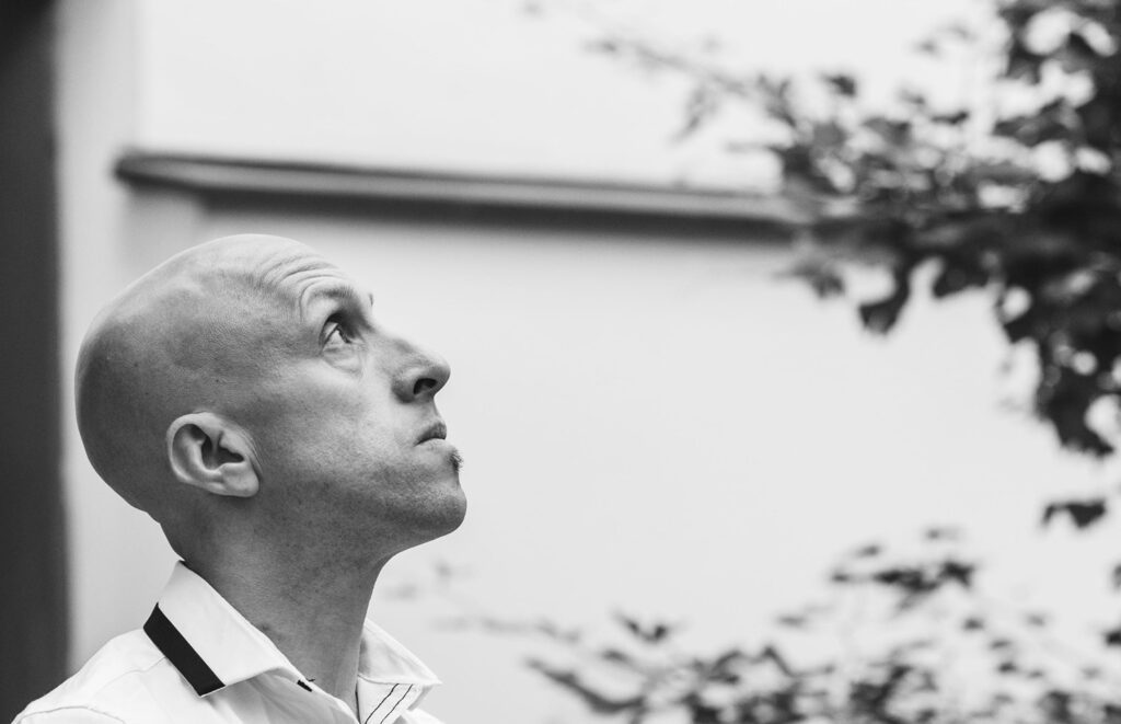 un signore tremante che aspetta il figlio