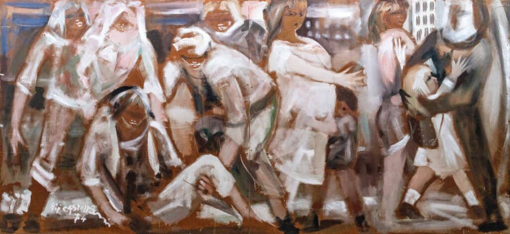 Pranvera nei dipinti qui esposti (e contenuti nel catalogo – ndr), specialmente nelle recentissime opere, ha ripreso tematiche già in precedenza affrontate, ma approfondite attraverso soggetti che evidenziano maggiormente la sua particolare sensibilità rispetto al dolore umano, un percorso interiore che probabilmente segnerà il suo futuro stile e mondo pittorico, soprattutto quello del mondo delle Donne.