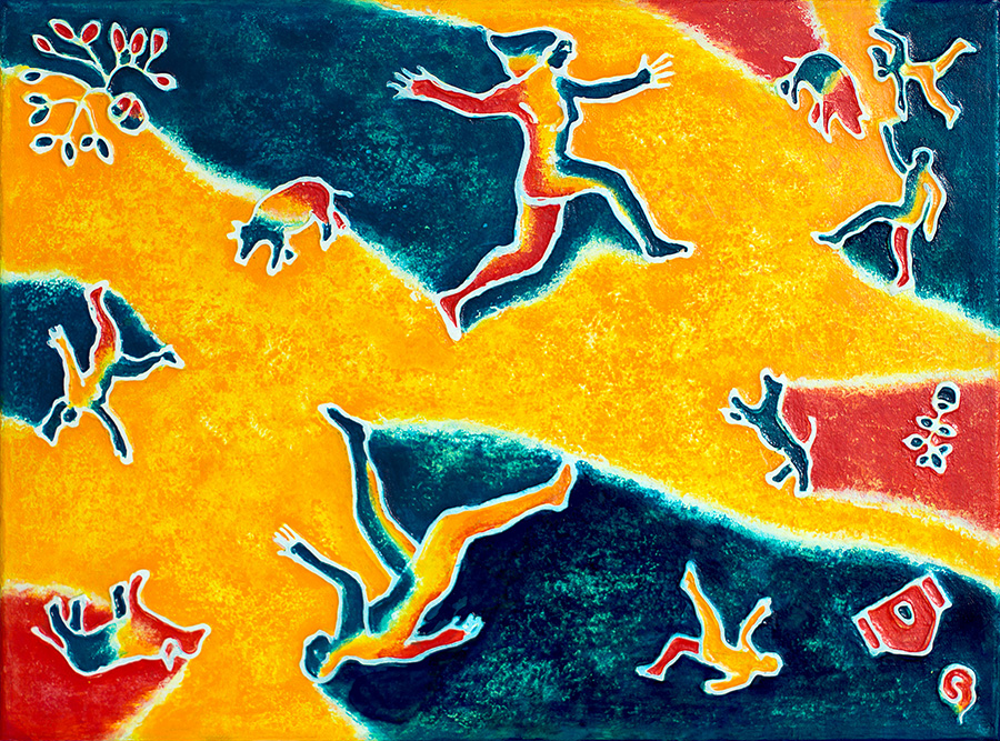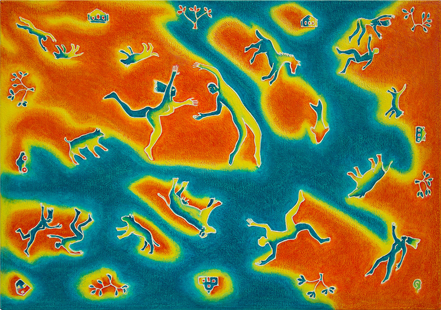 Il caos che solitamente popola i miei lavori meno recenti si riferisce in qualche modo, alla freneticità, spesso inutile e fuorviante, cui siamo costretti da una società che consuma le cose, i cibi, il mondo, la natura, il tempo, perdendo il senso della realtà profonda. Chi si ferma è perduto, incapace anche di trovare sé stesso.